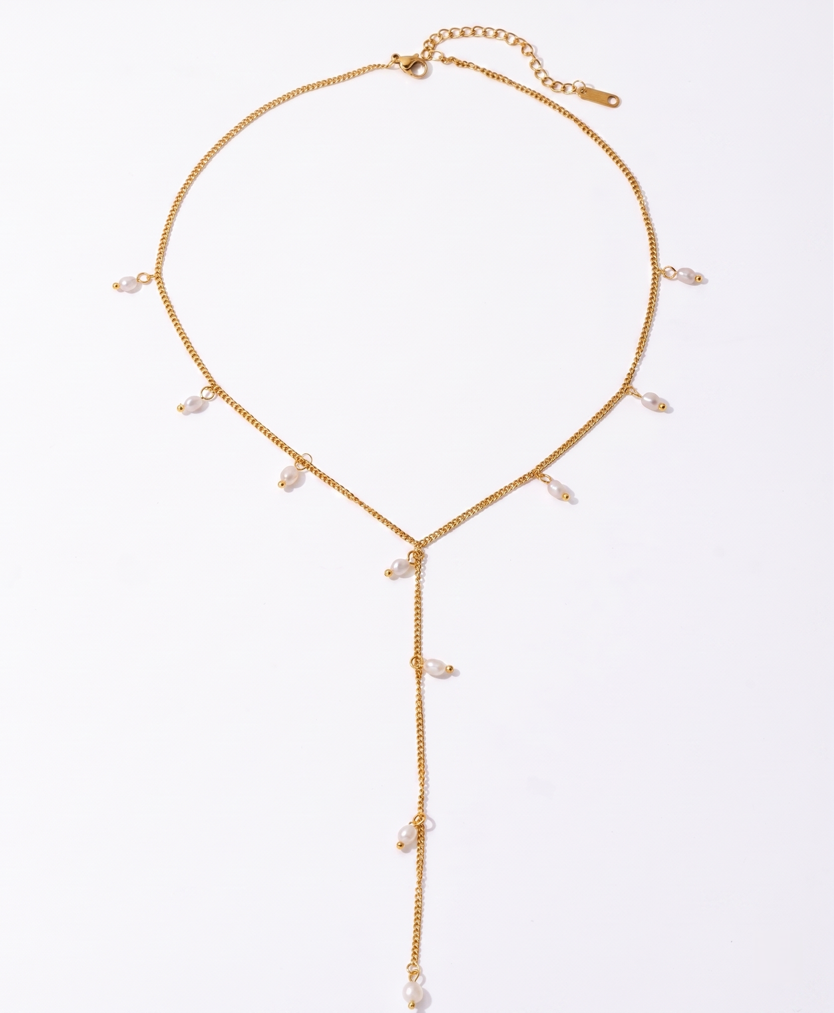 Diese elegante Y-Halskette verleiht jedem Look sofort eine feminine und luxuriöse Note. Die filigrane, vergoldete Edelstahlkette wird durch zarte Tropfenperlen akzentuiert und endet in einem stilvollen, verlängerten Anhänger – perfekt für tiefe Ausschnitte, Blusen oder Layering-Looks.